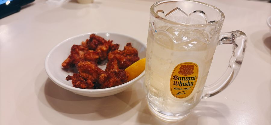 角ハイボールと若鶏の唐揚げ5個のセットでございます(≧▽≦)
