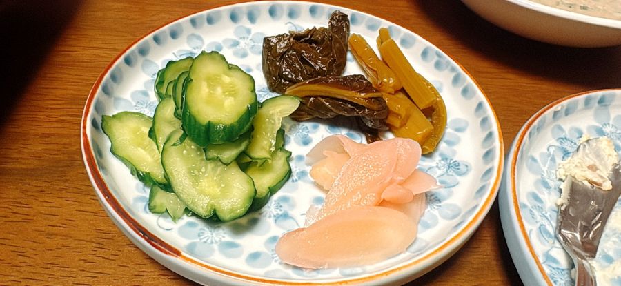 途中箸休めにお新香。