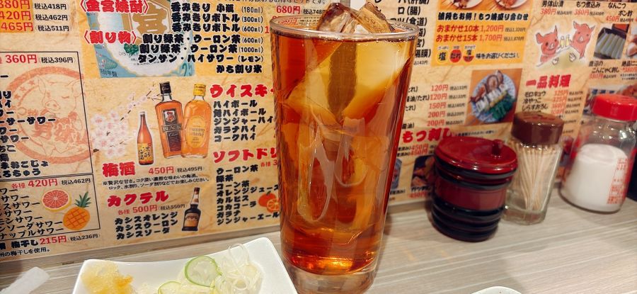 にんにくとか、納豆とかで、口の中が騒がしくなったので、〆にウーロンハイを頼みました。