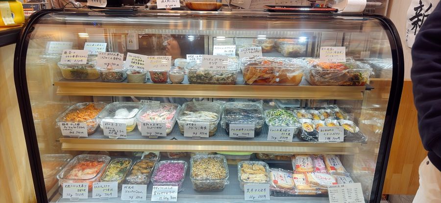 立ち飲み用のお酒と、販売用のお酒が並ぶ冷蔵庫。