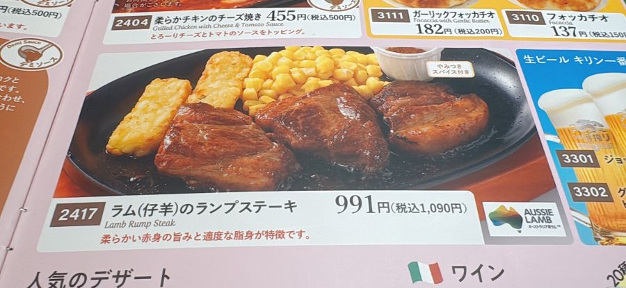 今回、ようやく食べたかったラムのランプステーキが食べられたので大満足。