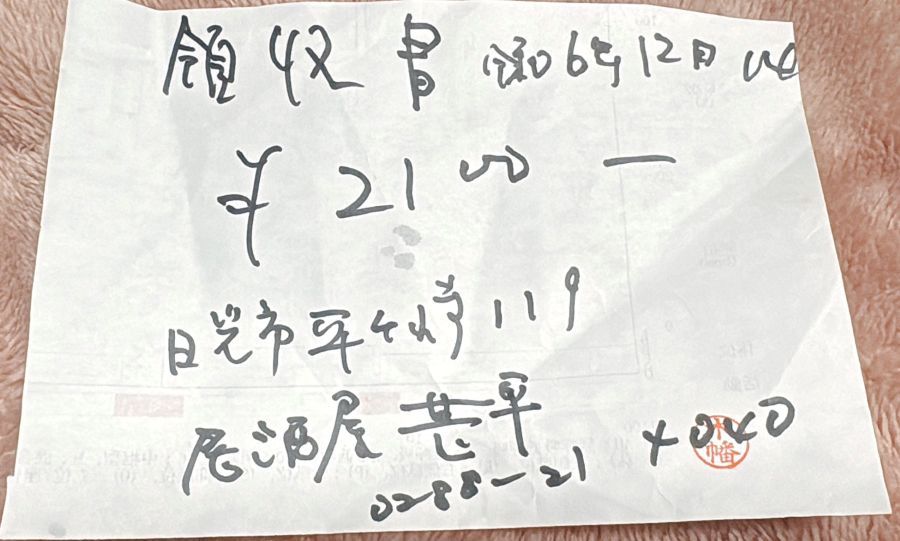 領収書くださいって言ったら、「領収書みたいなのでも大丈夫?」って言われて、どういうこと?と思いつつ、「それで大丈夫です」って言ったら、こちらをいただきました(≧▽≦)