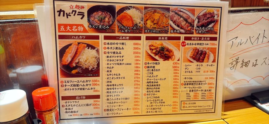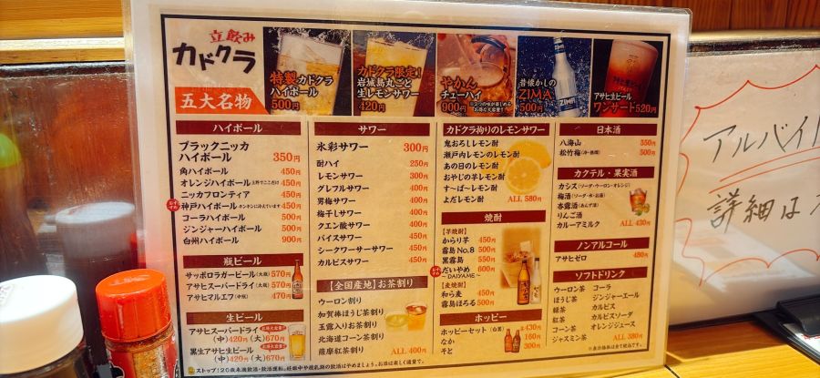 先日に引き続き、時差投稿でごめんなさい(。-人-。) ゴメンネですが、1月に上野で昼飲みしてきた立ち飲みカドクラ。上野の人気店です。