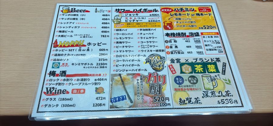 ドリンクメニュー2。