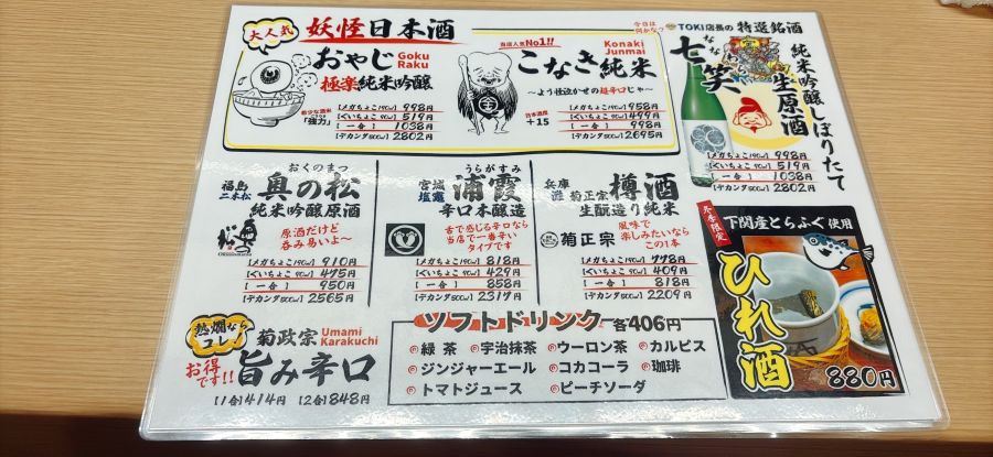 ドリンクメニュー1。