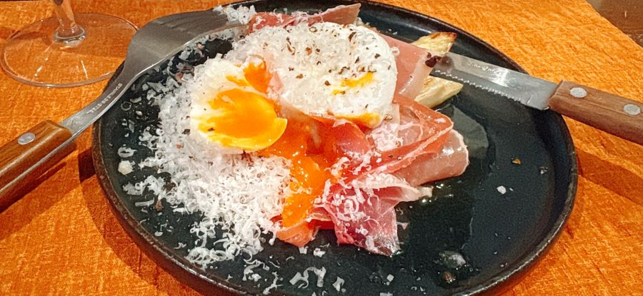 プロシュートとチーズの塩気と玉子のまろやかさがソースのような役割になってホワイトアスパラガスと相性バツグン(≧▽≦)