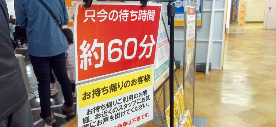 私たちが行った時は、土曜日のお昼時ということもあり、待ち時間は60分…